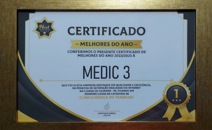 Recebemos da Empresa Next Pesquisas o Título de “Melhor Clínica de Medicina do Trabalho de Cajamar – SP” em votação popular.